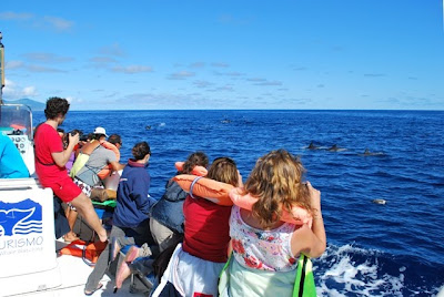 Our dolphin sightings have also been great. This morning we spent some time with a large group of common dolphins while yesterday we saw four different dolphin species (bottlense dolphins, common dolphins, Atlantic spotted dolphins and Risso's dolphins). These photos show some of our more special dolphin moments from yesterday: