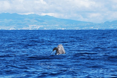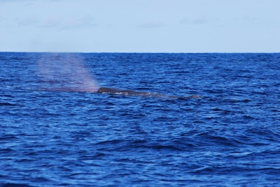 The last two days we have been really lucky with the weather and our sightings. The sky has been clear and we have had calm waters, making it much easier for our whale watching and dolphin swimming tours. During these last two days we have been seeing different groups of sperm whales as they pass our island. Both this morning and yesterday morning the sperm whales were feeding, so we got to see several of the whales raising their tails to go on their deep feeding dives. Yesterday socialising behaviour was also seen: in the afternoon least four whales were seen together at the surface. We currently have our afternoon whale watching tour on the sea, who knows what they may be lucky enough to see.