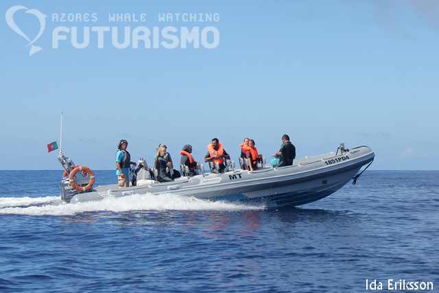 Today we entered the world of dolphins as we spent the day with common dolphins and bottlenose dolphins. No whales were around today but lots and lots of dolphins and devils rays. We had plenty of swimmers out there as well and we were lucky to swim with both dolphins and devils rays today. It is amazing to see a two meter ray gracefully fly through the water with minimum movement. We had several groups of both species out there so it was a day going from one group to the next to the next. Such typical Azorean summer "dolphin" sea.