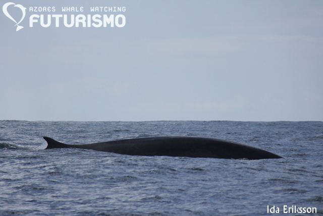 After a week of bad weather we finally had the chance to return to the ocean today. And what a day it was! First, we started the morning with two fin whales to the east of Ponta Delgada. One of them was a very big adult, the other a bit smaller. Several times we got to see them at the surface when they returned from their dives. Closer inshore we encountered a small group of common dolphins which we were surprised to see were accompanied by a Risso's dolphin. In the afternoon we tried to see a fin whale again, but only managed to see the blow from far away. So we went to two sei whales instead, which we got to see really well. Finally, for our third tour we headed out in the mist to encounter a group of sei whales travelling together. We counted 4 individuals, 3 adults and a juvenile, although from our ID photos of their dorsal fins it seems there were more adults. It was a really nice encounter, not having to wait long to see whales at the surface because of how many there were.