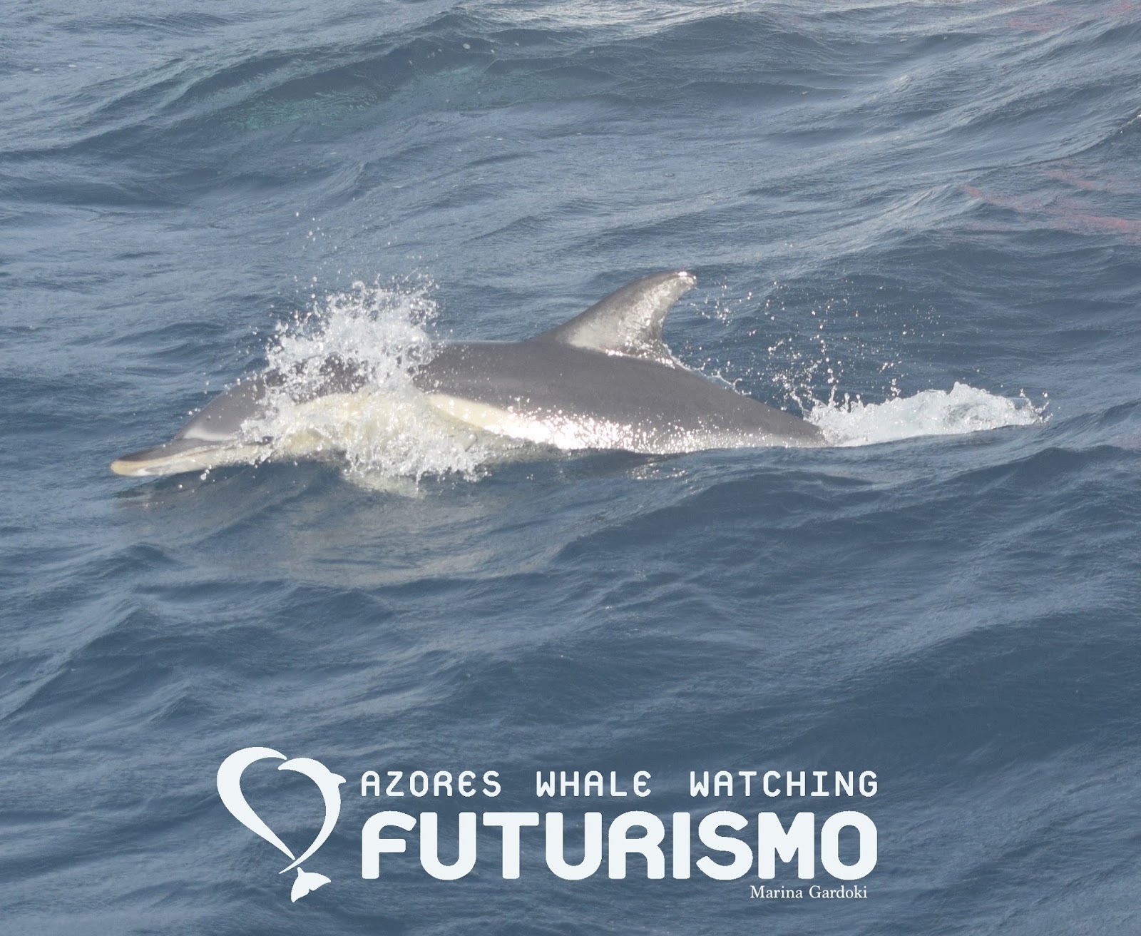This morning we had our first tour for the month of December. The swell was still high, but it was a nice sunny day, and most importantly we had cetaceans to see. We started the tour with a group of common dolphins. It was quite a large group of about 30 to 50 individuals and they were very active. The swell was like a playground for them, so the dolphins were surfing and leaping out of the waves. We could also see some feeding behaviour, with the seabirds taking advantage to dive down and grab some of the fish that the dolphins were corralling. Next we set off to try to find a whale in an area where our lookouts had seen a few blows. We were lucky, we didn't have to wait too long before we spotted a blow not far from our boat. We could follow the footprints left behind by the whale's tail at the surface, and several times we saw the blow again. It wasn't easy to see (nor photograph) much more than these blows, as the whale wasn't showing much of itself and was coming up for just one breath each time. Nevertheless we could see that it was a sei whale, the third largest animal in the world! It wasn't a bad way at all to start our December sightings.