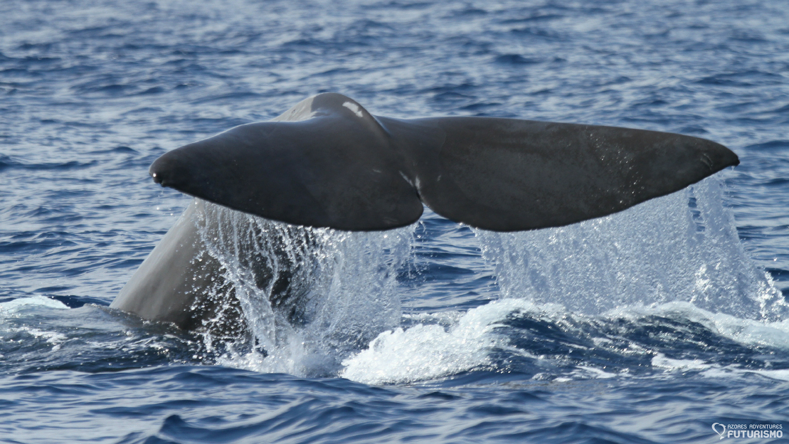 In the morning we started with the bottlenose dolphins, a very big pod spread in a very big area. We continued our tour and we found sperm whales, the biggest predator in the world, we stayed with the animal some minutes in the surface and eventually it showed the tail. When they do this it means that they go for a feeding dive (deeper dive) and we will not see them for a while (they can stay maximum of two hours under water). When we were coming back to Ponta Delgada we came across a small group of common dolphins and our boat of full day was still lucky enough to see some risso’s dolphins.