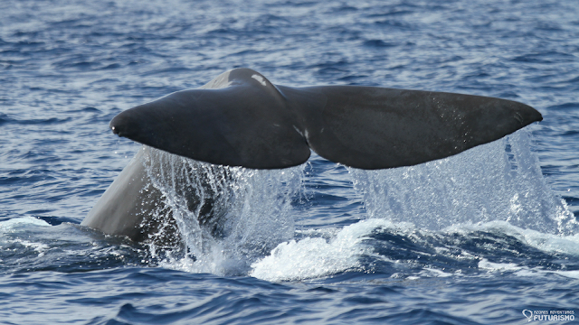 In the afternoon sperm whales again! We get to an area with three sperm whales but they were a far away from each other, even though they were part of the same group. At a certain point they all went for a shallow dive (when they don’t show the tail) and when they surfaced again two of them were together and stayed together till the end of our sighting. After, we went for bottlenose dolphins, it was a very small pod with only females and juveniles/babies. We know that because all of the smaller dolphins were always side by side to an adult.