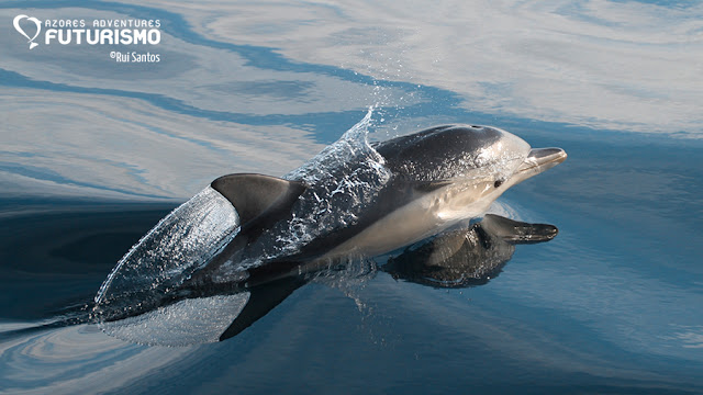 Some miles ahead we also came to find other group of common dolphins spotted through the boat while we were passing by them, but in this group we only saw adult individuals. Both of the groups found today were medium-sized, so who knows if all this animals weren't navigating towards each other to meet and re-group with a greater dimension. Also during the morning we were able to spot great skuas, velellas and one shark.