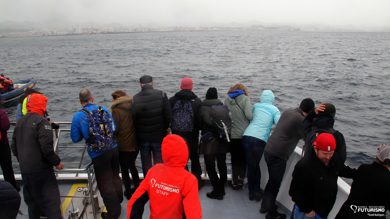 After some time we decided to keep on with our tour to look for dolphins. And as a good winter day, the rain started to fall when we were heading towards land without seeing anything. But... as you know, good things happen to those who wait, so.. to us! Our lookout took us to a very nice and playful group of common dolphins very close to the harbour. They delighted us playing and bowriding our catamaran.