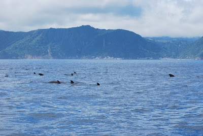 Today was another great day for pilot whales, sperm whales, bottlenose dolphins and common dolphins. Again it was another one of those really calm days and although the sky wasn't always clear we had some beautiful views of São Miguel island covered in patches of low cloud. Here are a couple of photos from today: