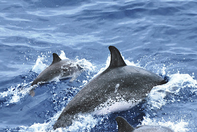 A lovely day on the sea, especially with the super friendly Atlantic spotted dolphins and their calves... click here for a video of these sociable dolphins bow-riding our catamaran, Cetus. Other encounters today included sperm whales and common dolphins!