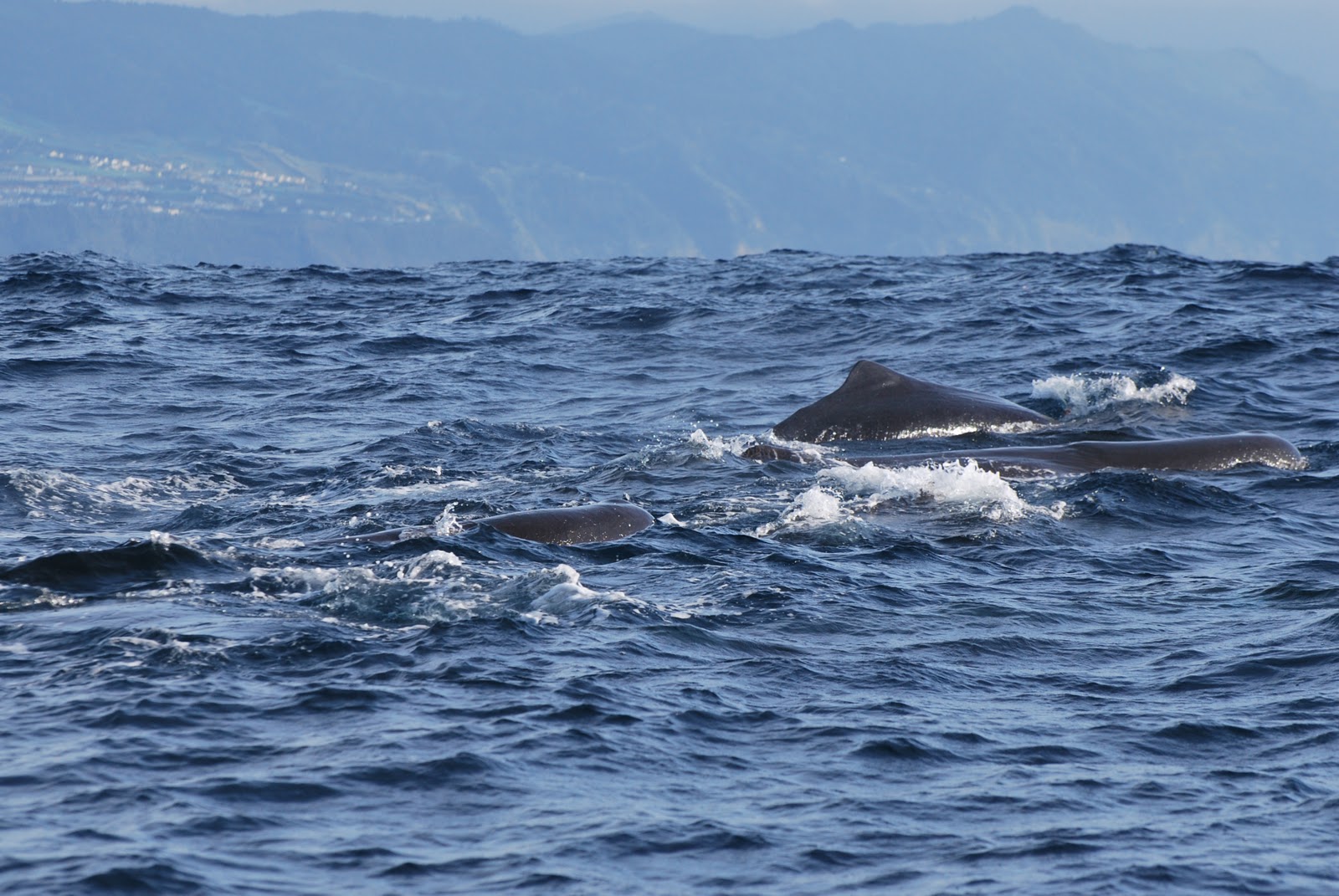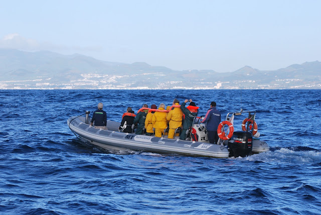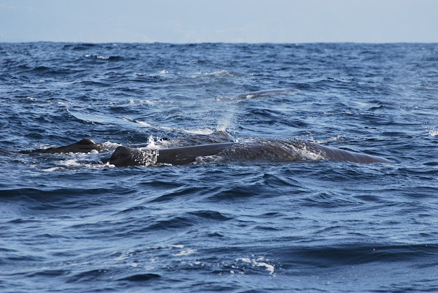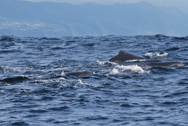 We also had a surprise encounter with a small group of Risso's dolphins that we spotted on our way in to the coastline. Although these dolphins were are a bit more shy, with a bit of patience we got a few nice glimpes. The group of Risso's dolphins also inlcluded a young juvenile that was swimming alongside an adult that we could identify from previous encounters.