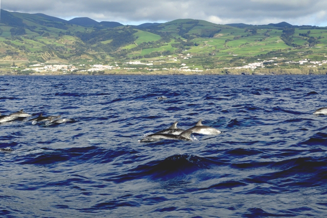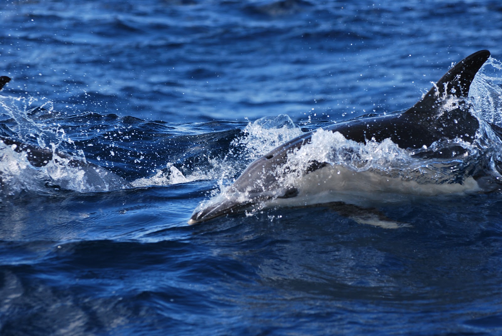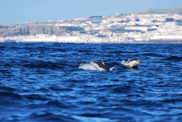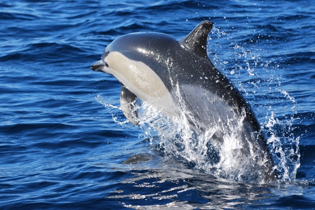 common dolphins. The dolphins were very curious towards our boat, so they spent a lot of time simply swimming in front of our bow, giving all of our passengers a great look from the front of the boat.