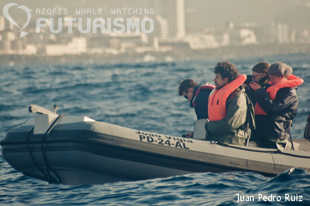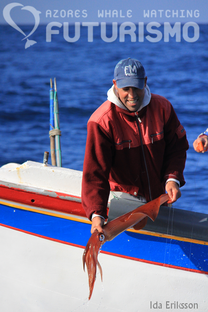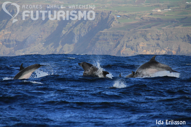 This morning we had common dolphins everywhere, they were very spread out, but curious towards our boat, surfing the waves and bowriding. We also saw plenty of birds, both out on the sea and close to the coast. We made a little stop in Caloura to see the fishing harbour, the lava rocks and the birds. We saw great skuas, a Cory's shearwater, a couple of Azorean buzzards, rock pigeons, yellow-legged gulls, black-legged kittiwakes and a little egret. We had nice weather out on the ocean, but now in the afternoon, on land, we are getting some rain. It is good to be inside, be drinking some nice hot tea and for everybody reading this: have a nice weekend!