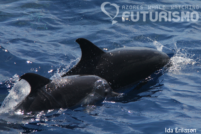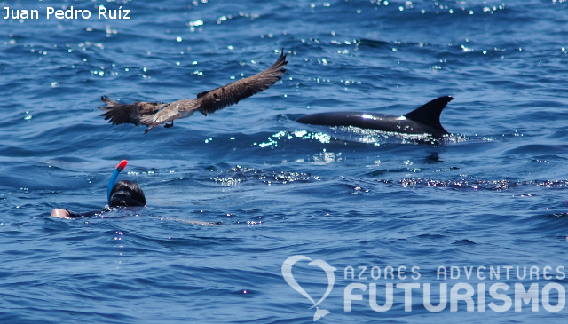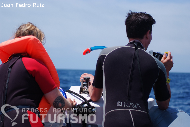 During our trip we found other species of animals present in our waters. Throughout the morning from all our boats we saw loggerhead turtles, and on our way back to Ponta Delgada we spotted a shark dorsal fin from our zodiac. We stopped the boat trying to identify the species and we concluded that it probably was a big blue shark swimming close to the surface. From our catamaran we encountered a white marlin on the way back. These waters are definitely full of life!