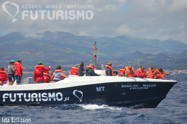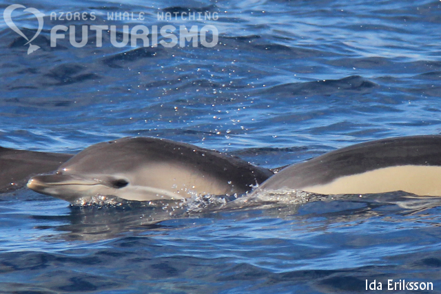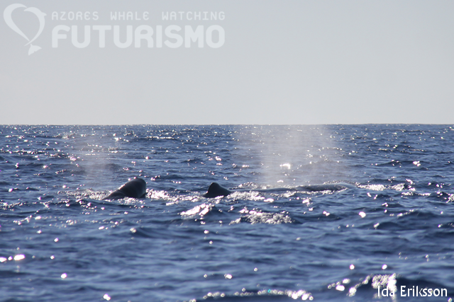 Today we got to see both heads and tails from sperm whales, and breachings a bit far away from us. I think all of us lost count of how many sperm whales we encountered between all our boats. We also enjoyed the company of a large group of bottlenose dolphins and just outside our marina we met our swimming boat and a group of common dolphins. Our swimming boat was out having a great time swimming with these dolphins. It is a wonderful feeling for us, the crew, to have clients smiling for three hours and hopefully bring great memories with them for the rest of their lives.