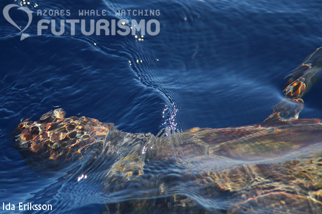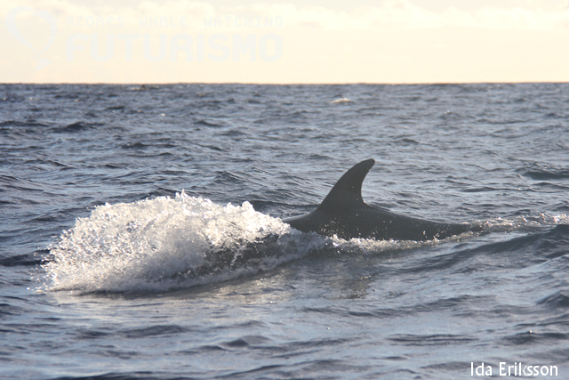 Today in the morning we encountered many feeding groups of common dolphins and Atlantic spotted dolphins together with Cory's shearwaters, common terns and yellow-legged gulls. Among the spotted dolphins we had some really new born babies, so small that they looked like sardines ;) We also encountered a large group of bottlenose dolphins. The dolphins were diving all the time as they were feeding as well. It was a morning of getting breakfast in the belly for the dolphins. We also saw a loggerhead turtle. As well as whale watching we also went out swimming with bottlenose dolphins, and two boats stopped in Vila Franca do Campo as we also have a Full Day tour. In the afternoon we encountered the same dolphin species, although this time we did not observe any feeding activity. First we encountered a spread out group of common dolphins and later we were surprised by some juvenile Atlantic spotted dolphins that came leaping to our travelling boat at full speed, then disappeared just as quickly as they had appeared. The best encounter in the afternoon was with a group of about 40 bottlenose dolphins who were all travelling together. We also enjoyed beautiful coastal views during the afternoon tour.