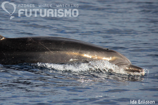 Today was a day of wildlife. We encountered both common dolphins and bottlenose dolphins. The bottlenose dolphins were active and full of energy as they jumped several meters up in the air, sticking their heads out off the water and rolling around in the water. This was clearly courtship behaviour and we had the luck to see the strong males show of for the females (and our clients). On our way back we passed by Vila Franca Islet and we got to see lots of birds flying around, at least seven little egrets, a great blue heron, the usual yellowlegged gulls and rock pigeons. On the way towards Ponta Delgada we got to see even more little egrets flying around. And right now out at sea we have the joy to see the juvenile Cory's shearwaters learning to fly.
