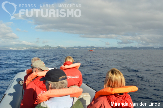 Today we enjoyed a beautiful summer-like day out on the ocean. Contrary to yesterday the sea was calm and flat so we could all enjoy the boat ride. Out there we had the company of two of our resident dolphin species: common dolphins and bottlenose dolphins. We had both our whale watching boat and swimming boat out there with them and the dolphins created some nice memorable experiences for our guests. We had many children aboard our catamaran and it is a lovely experience to see children watch dolphins, and having dolphins looking back. On our way back along the coastline we also passed by Vila Franca Islet to see the crater and its wildlife.