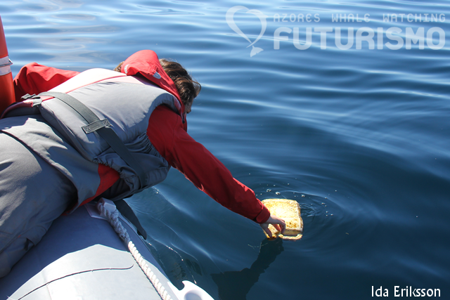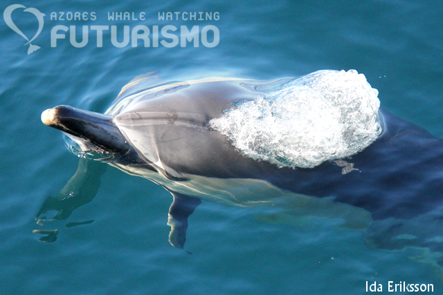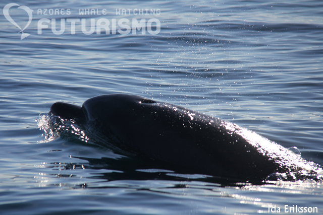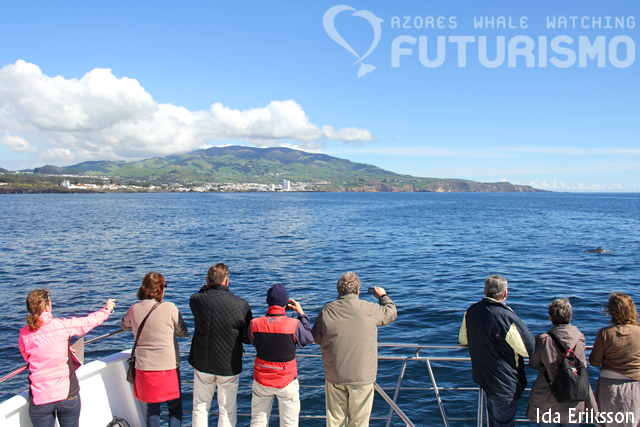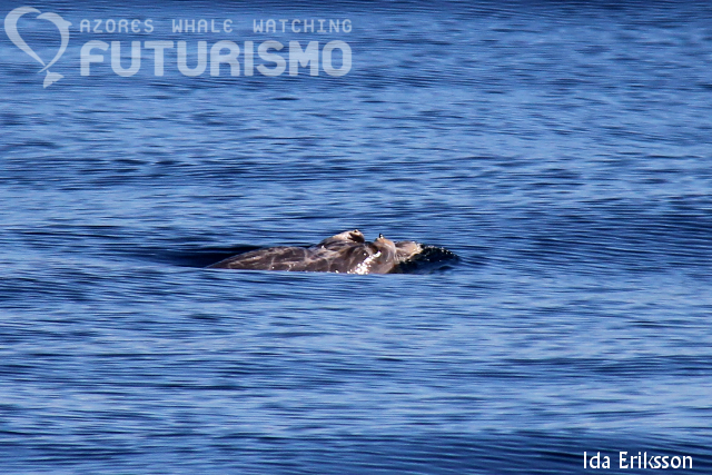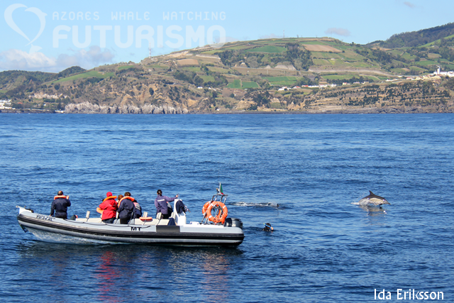 Today we had an ocean adventure with common dolphins, bottlenose dolphins and a loggerhead turtle. We started by cruising by the oilplatform that is outside the marina to get a look and take some photos before we sped up to get to the bottlenose dolphins. At first it felt like we were just watching water as all the dolphins dived. We waited, and *poff* all of a sudden they are all on the surface and everywhere. Left, right, back, front - barely knowing where to look. We spend some great time with them before heading towards the common dolphins, but the group was spread out and we had very little time with them as they preferred to surf the waves then to spend time with us. So, we cruised to Vila Franca Islet to enjoy its beauty and the coastline on the way back. We sure had an adventures and wet ride back!
