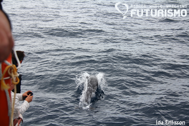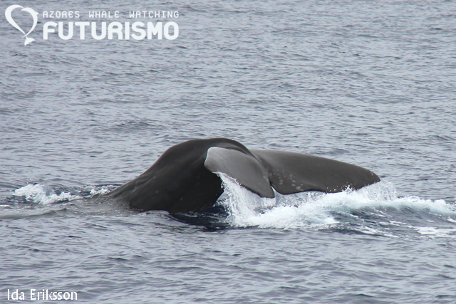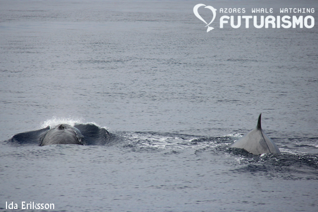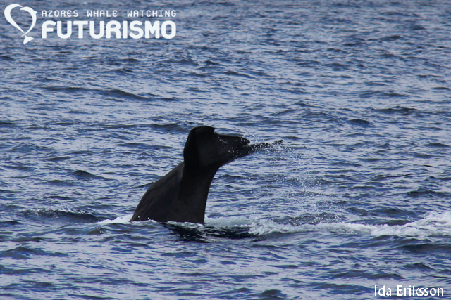 We had some different sightings today on our two boats that left the marina. Our zodiac encountered sperm whales, common dolphins and fin whales. From our catamaran, we passed the common dolphins to get to the sperm whales, which showed us their majestic flukes, and after them we left to see the fin whales but we ended up with lots of sei whales, we had three closer to us but there were more blows around. One of the sei whales decided to bowride Cetus! And just outside the marina we ended up bottlenose dolphins. So we all got to see a dolphin species, a species of baleen whale and the largets toothed predator in the world: the sperm whale. In the afternoon one zodiac left to swim with wild and free dolphins.