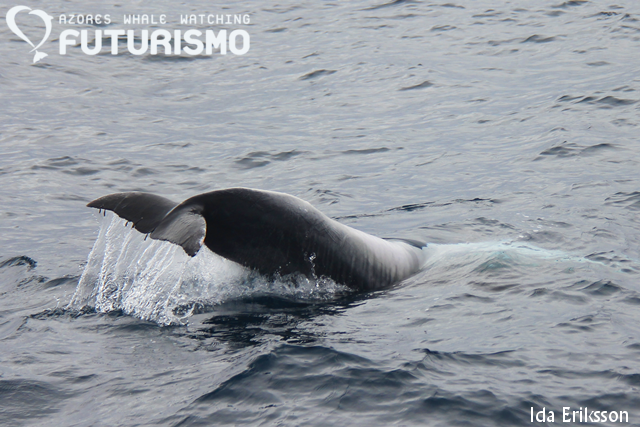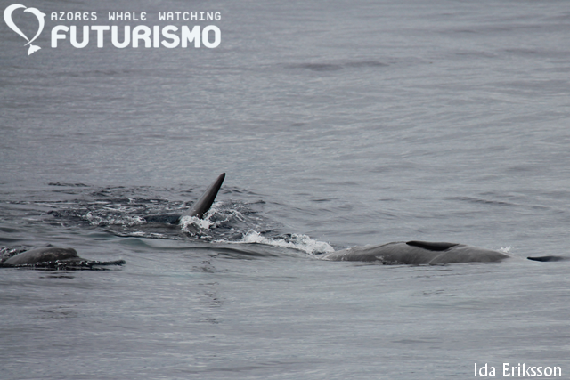 Today in the morning we started going towards an area of sperm whales (the family of Elsemiek and Peregrine) where there also was a fin whales but from our catamaran we found a sei whale so we stopped and watched it before going to the sperm whales. So our zodiac had an encounter with a fin whale, plus the sperm whales, while the catamaran saw a sei whale plus sperm whales, and we ended the tour with common dolphins. In the afternoon we searched a long time for the sperm whales but unfortunately we never found them. Instead we watched a group of bottlenose dolphins playing around and giving us an amazing show with high jumps and tailslapping.