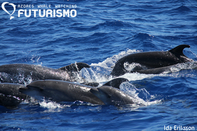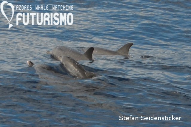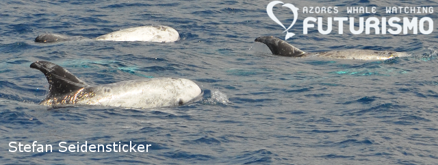 Risso's dolphins with new born babies. Today they were calm and curious and playing close to our catamaran and some of the babies were spyhopping and looking at us. Some boats also encountered