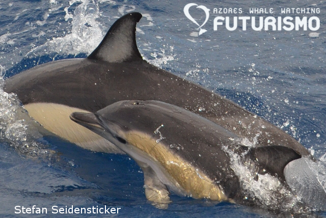 common dolphins along side our boat as we traveled to see a male