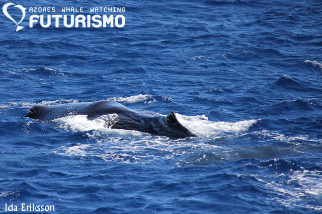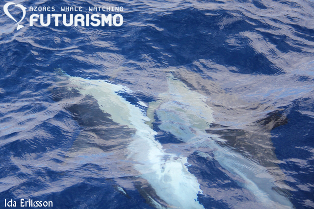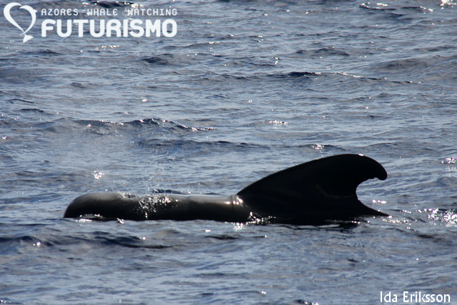 Today our most famous sperm whale visited us. We call him Mr Liable and he is the most encountered sperm whale off the south coast of São Miguel Island. The oldest photo we have on record of him is from 2006, but he has been around much longer than that. We call him Mr Liable because he is a very reliable sperm whale. He always returns to our waters and he is great to watch and almost always shows an amazing tail. Today was no exception and from our catamaran we got to see him two times. We also had a nice encounter with some common dolphins so that we could enjoy the best of two different types of encounters. In the afternoon we resighted Mr Liable and thanks to our clients and their photos we could confirm this and they contributed to our research. We encountered dolphins as well, two species; common dolphins and bottlenose dolphins. And to top it all we also encountered a loggerhead turtle.