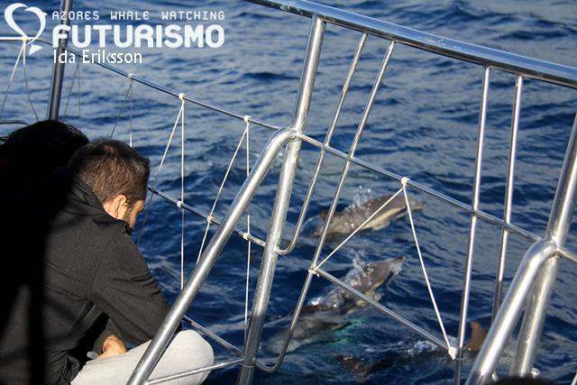 Watching common dolphins bowriding