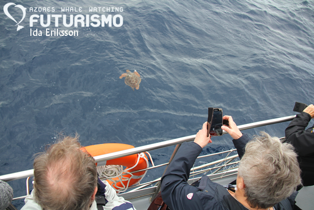 In the morning we traveled far to meet a family of sperm whales, and we got to see several family members including a newborn baby. On the way to the whales we also encountered bottlenose dolphins. In the afternoon we started with common dolphin that also had new born babies, even if we are starting reach autumn and winter. We also encountered our famous Bubblemaker group with his friend "Lady". Sometimes we see this group together and sometimes in two subgroups that we call by two individuals that stands out, "Lady" and "Bubblemaker". We also saw Cory's, great and Manx shearwaters, a northern gannet and other marine birds.