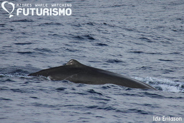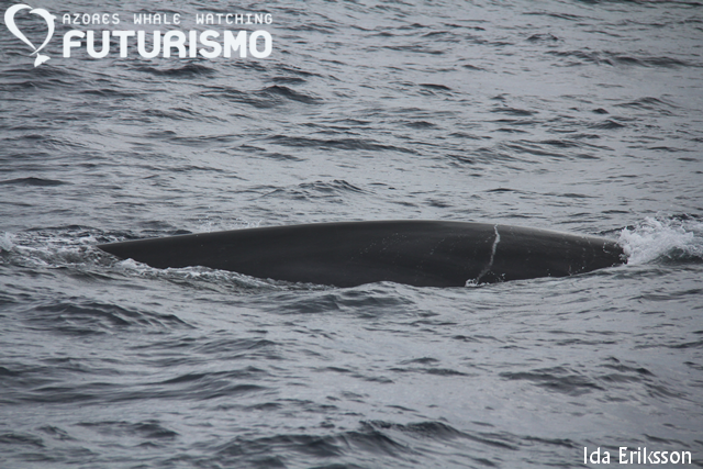 Fin whales continue to surprise us on our tours. This morning we encountered 2 fin whales, making it our fourth day this week seeing this species. Fin whales are sighted very often in the Azores during the Spring months, but not so much during other times of the year. However, this year they have been surprising us throughout the Summer, and now again in the Autumn. This is the time of the year that they are migrating south for the winter, the time of reproduction. It's still a bit of a mystery exactly where the fin whales (and blue whales) of the north Atlantic go to give birth.  This morning we also encountered common dolphins on our way out to the whales. It was a group of about 150 dolphins spread across a large area. It was nice to always be in the company of them as smaller subgroups from this bigger group kept approaching our boat to accompany us. And the swimmers had a great time with the dolphins as well.