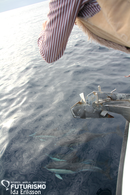 Today we got blessed by the presence of two different whale species. In the morning we had Mr. Liable around, our famous male sperm whale, but we also got to enjoy both common dolphins and bottlenose dolphins. In the afternoon we started with the two same dolphins species and we ended with three fin whales. They were very calm and stayed around our catamaran Quatro Ventos a long time. And we also had common dolphins around the whales. And a few lucky got to see a leatherback turtle.