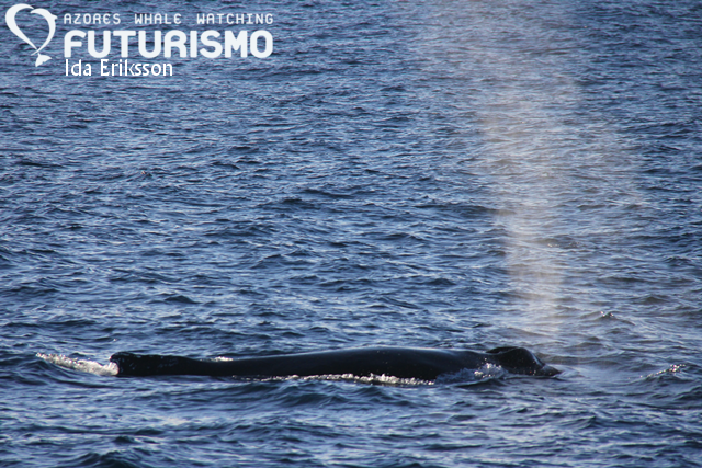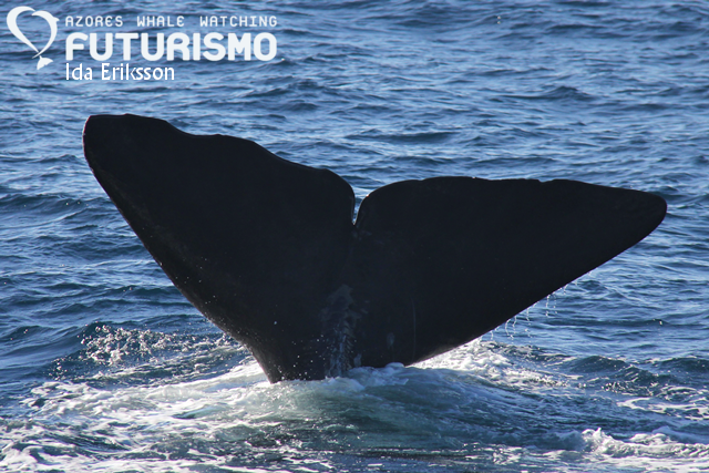Today we started with two different groups of bottlenose dolphins, first Bubblemakers group close to the shoreline and further out a larger group of bottlenose dolphins that were very active. After them we stopped in an area were our lookout had seen Mr Liable (sperm whale) diving. We arrived a bit early and had to wait almost 40 min for him. But he surface far away and we had to hurry to catch him while on the surface. Due to the great work of our lookout and captain we arrived in time to see him rest and breath eand later a fantastic tail just like yesterday. On the way back we had company from both more bottlenose dolphins and common dolphins.
