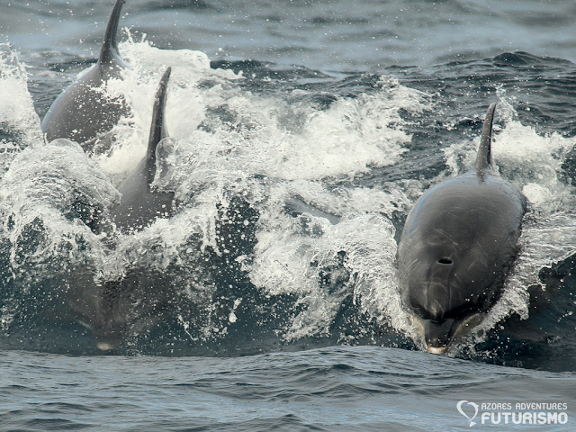 and common dolphins were also very playful. In the afternoon… surprise! Sperm whales appeared!